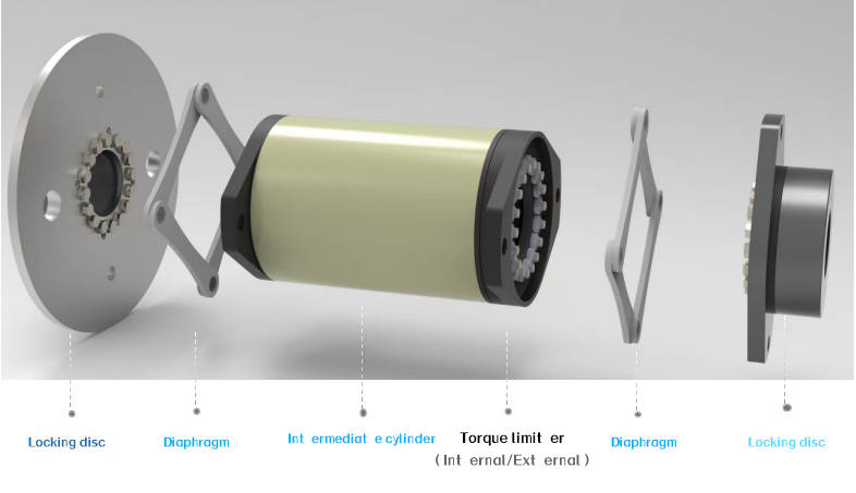 The torque limiter is proposed to adopt the integral disc spring type, which has the following characteristics: ① reducing the pressure stress on the friction plate; ② reducing the total stiffness of the disc spring.